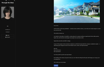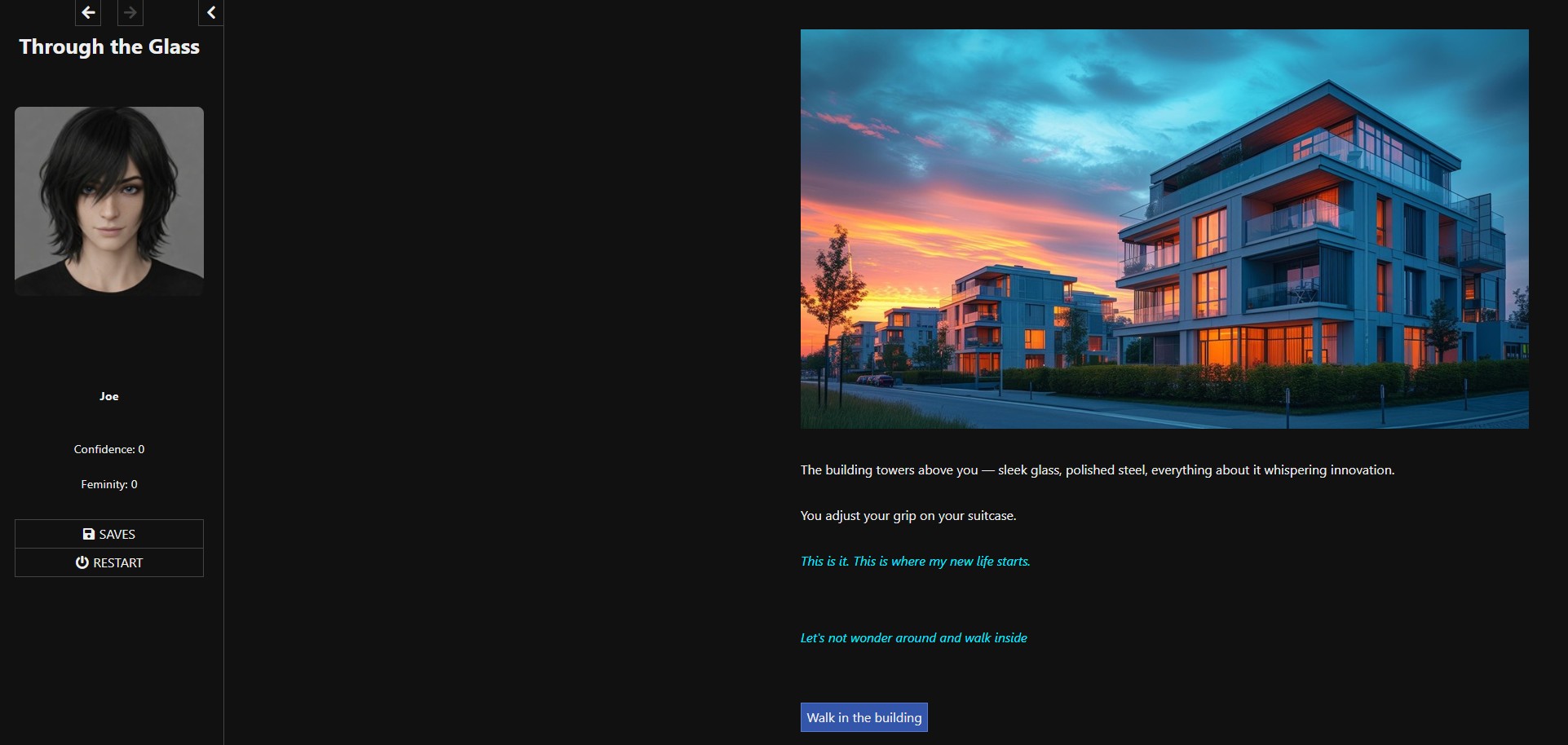 Through the Glass is a short, atmospheric interactive story about identity, routine, and the quiet feeling that another life might be waiting just out of reach.